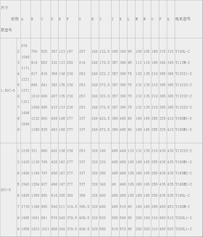 GC型多級泵系臥式、單吸多級、分段式離心泵全部采用計算機設計和優化處理,公司擁有雄厚的技術力量、豐富的生產經驗和完善的檢測手段,從而保證產品質量的穩定可靠。GC型多級泵具有效率高、性能范圍廣、運行安全平穩、噪音低、壽命長、安裝維修方便等特點,供輸送清水或物理化學性質類似于水的其它液體之用。廣泛適用于工業和城市給排水、高層建筑增壓供水,園林噴灌、消防增壓、遠距離送水、采暖、浴室等冷暖水循環增壓及設備配套等,尤其適用于小型鍋爐給水。